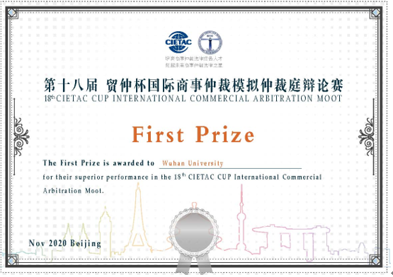近日,从第十八届“贸仲杯”国际商事仲裁模拟仲裁庭辩论赛主办方发来获奖证书,我校代表队在2020年的“贸仲杯”国际商事仲裁模拟仲裁庭辩论赛以循环赛总分第一的成绩从来自全国各地的六十九支队伍中脱颖而出,荣获全国一等奖。