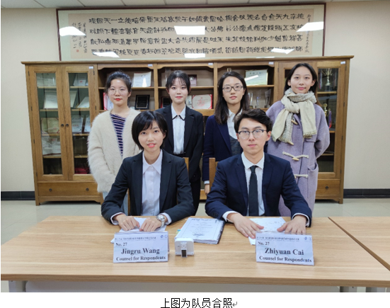 2019级研究生孙兆淇、2020级研究生李茜担任教练,队员包括2020级研究生王婧茹、王怀敏、朱文洁、蔡志远,2018级本科生黄婧纯。其中,王婧茹、蔡志远作为上场队员进行口头辩论。经过三天循环赛的激烈角逐,武汉大学代表队以第一名的成绩荣获全国一等奖,其中王婧茹、蔡志远同学从众多选手中脱颖而出,分别以循环赛积分第一和第三的好成绩荣获“最佳辩手”奖,朱文洁同学荣获“突出贡献”奖。