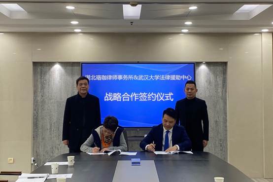 湖北珞珈律师事务所孙辉主任与武汉大学法律援助中心项焱主任签订战略合作协议书。在各单位相关领导、老师的见证下,双方达成友好合作协议。会议结束,双方单位的代表合影留念。
