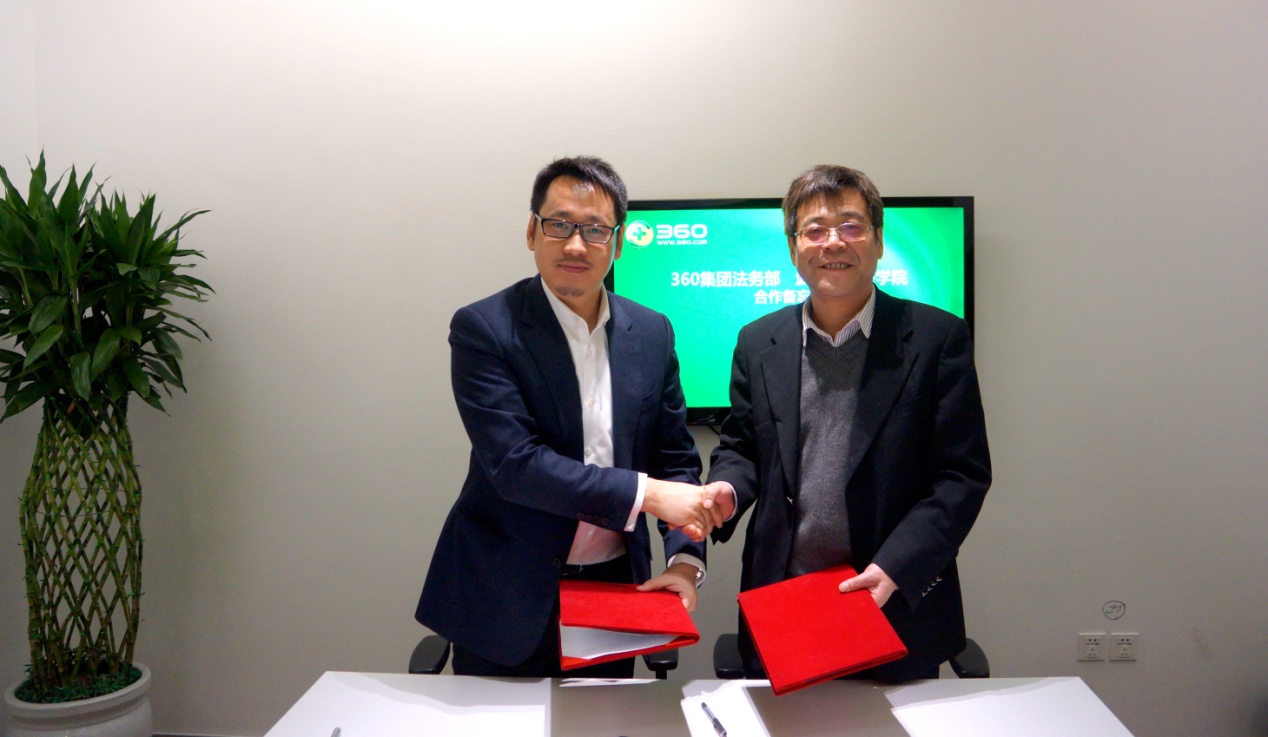 院长冯果教授、副院长黄志雄教授前往奇虎360公司,同360公司副总裁兼总法律顾问许坚先生、360公司法律研究院总监赵军先生等人就双方在网络法领域的合作进行洽谈,冯果院长与许坚副总裁兼总法律顾问共同签署了《北京奇虎科技有限公司与海角社区app