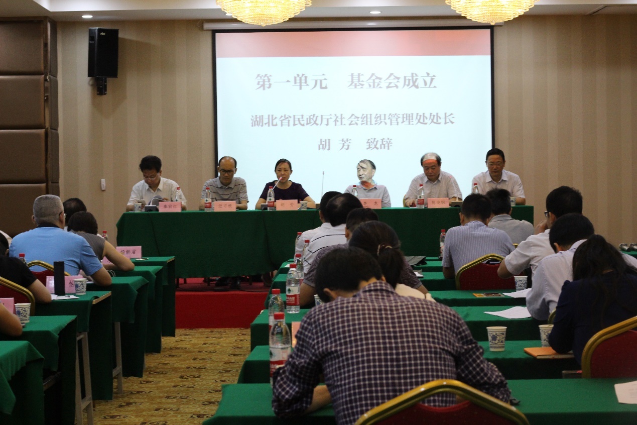 会议首先由基金会理事举手表决,全票通过基金会章程,投票选举汪习根为基金会理事长。基金会登记主管单位湖北民政厅社会组织管理处处长胡芳就基金会章程条款、财务监管、信息公开等事项作出指示。学术委员会主席李龙感谢各位理事对基金会成立做出的贡献,随后基金会理事长汪习根对基金会未来的运作与管理做出了规划。大会宣布李龙法学基金会正式成立。