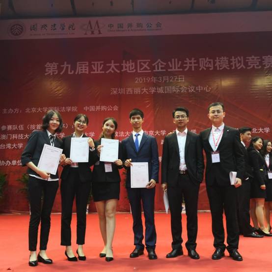 和中国并购公会联合主办的第九届亚太地区企业并购模拟竞赛于3月27日圆满落幕。北京大学、清华大学、南京大学、厦门大学、上海交通大学、中国政法大学、华东政法大学、香港大学、香港城市大学、澳门科技大学、台湾大学、台湾政治大学、台北大学、东吴大学、中正大学和武汉大学等16所来自两岸三地的高校同场竞技。武汉大学代表队首次参赛并一举夺得最终大奖——“最佳并购方案奖”。队员贾海东荣获“最佳表现奖”并直接获得中国并购公会特别颁发的 “初级并购交易师证书”,汪玥荣获“最佳队员奖”。