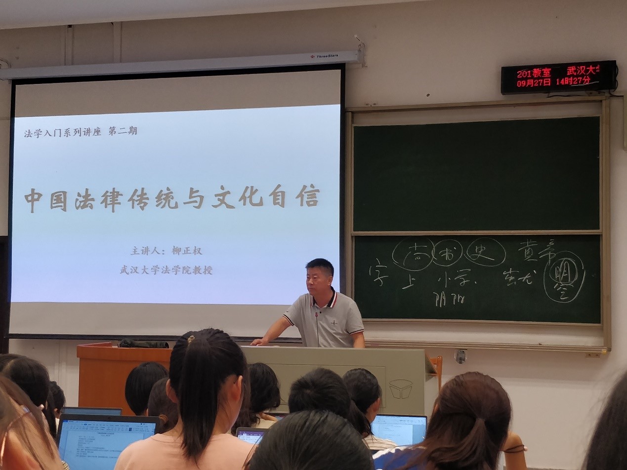 教授、博士生导师、法律史教研室主任柳正权老师。2019级全体本科新生参加了本次讲座。