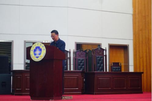 模拟法庭举行。校党校督导员师治琦、社会学院党委书记李玉龙、海角社区