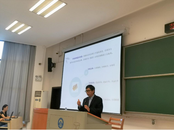 随后,江老师用简单易懂的语言为我们介绍了行政法的基本内容,行政法由行政主体,行政行为和行政救济三个板块构成。江老师重点讲述了行政行为与行政救济。行政行为可以被分为行政处罚、行政许可和信息公开:行政强制针对未发生的行为,行政处罚则针对已经发生的行为;行政许可指的是普遍禁止的解除;信息公开制度牵涉到阳光政府的概念,要让权力在阳光下运行。在解释行政救济时,江老师举了他最近接手的一个案子,该案海角社区户口迁移并且持续了十七年之久,江老师从多个方面分析该案件,并提出了在不同情况下的解决办法,江老师在分析案件的同时,讲授了行政救济的知识,将各种含义、意义以及案例清晰地罗列同学们眼前,生动形象且易于理解。