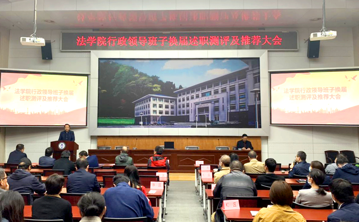 院长冯果首先代表现任行政领导班子作任期工作述职,对学校长期以来给予学院的关注和支持表示感谢,对在任以来学院班子成员和全院教职工的辛勤付出以及对自己工作的理解和包容表达谢意。他指出,过去四年中,学院行政班子坚决贯彻党委集体领导,切实落实“立德树人”方针,以“制度建院”、“人才强院”、“文化兴院”为遵循,以“双一流”学科建设为核心,廉洁奉公、精诚团结、开拓进取,全面推进学院事业发展,法学学科在国内外学术界和社会各界认可不断提升,综合实力不断增强,国际影响力进一步扩大,全院上下形成了和衷共济、奋发进取的良好氛围。随后,院长冯果,副院长秦天宝、何荣功、祝捷、黄志雄、吴育生分别结合分管工作作了个人述职。