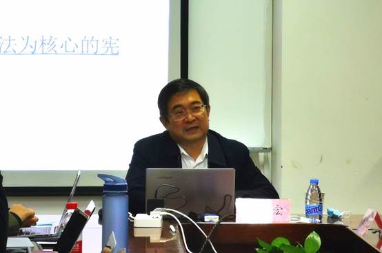 秦前红教授主持。宪法学与行政法学教研室伍华军、黄明涛、苏绍龙、翟晗等老师和校内外师生参加讲座。
