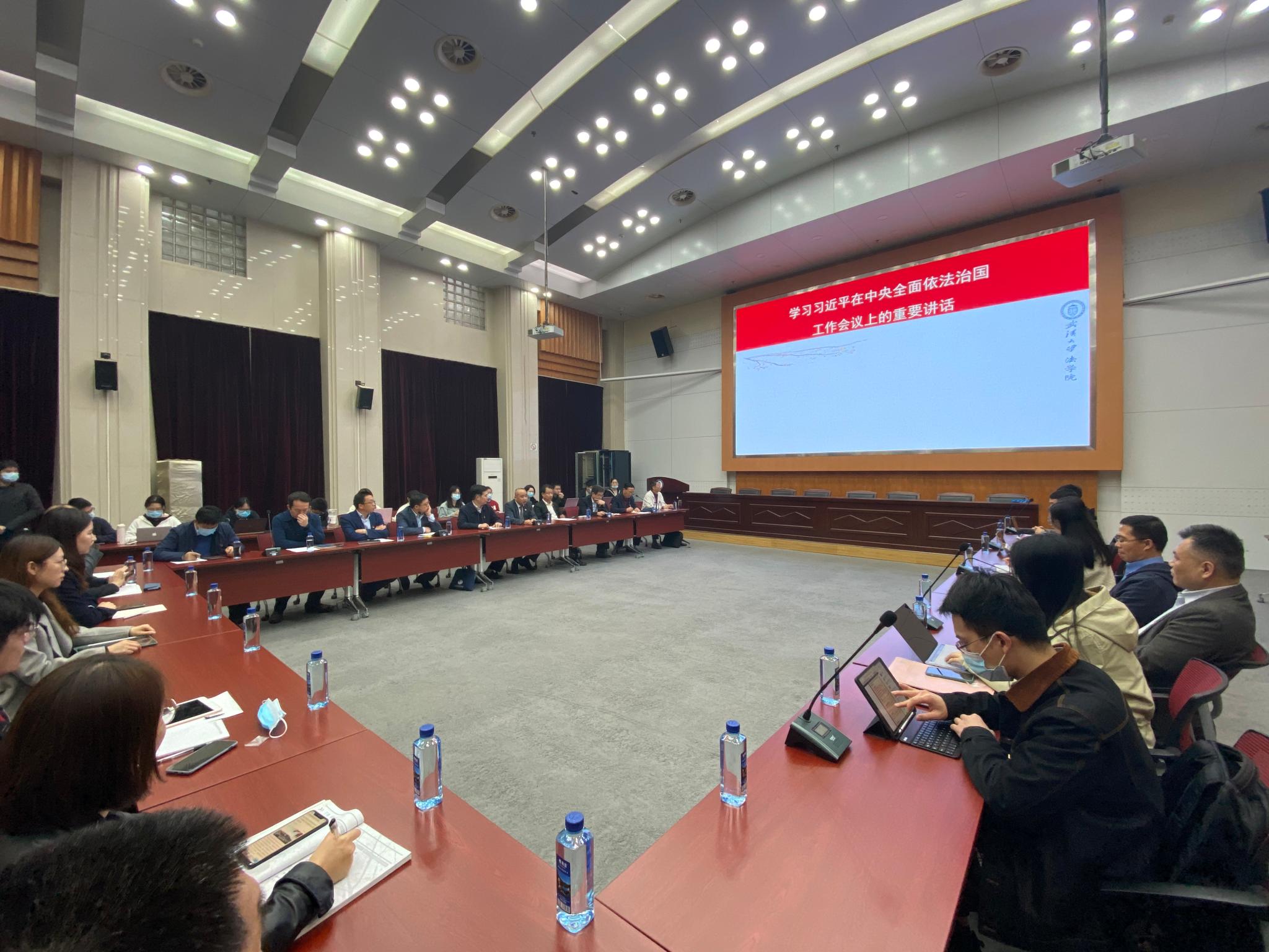 11月16日至17日,中央全面依法治国工作会议在北京召开,习近平总书记出席会议并发表重要讲话。师生代表首先集体观看了17日《新闻联播》栏目对会议召开情况的报道。