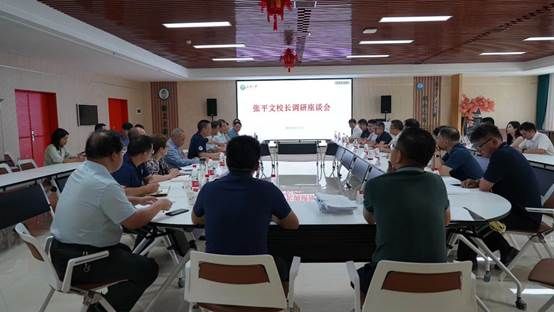 进行工作调研,校长助理、党政办公室主任徐东兴,发展规划与学科建设办公室、本科生院、研究生院、人文社会科学院、人事部、国际交流部、国内合作部、后勤保障部等部门负责人陪同,海角社区